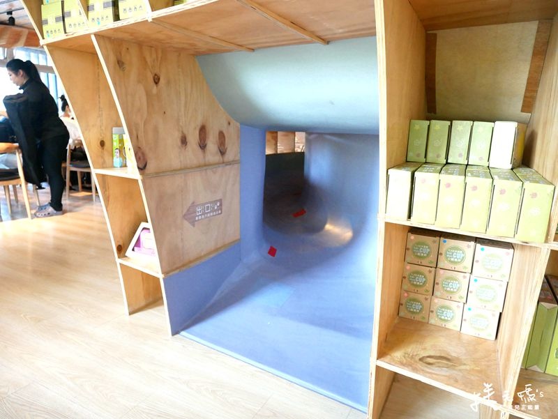 隧道就藏在書櫃後面,爬到一半還可以探頭出來超可愛