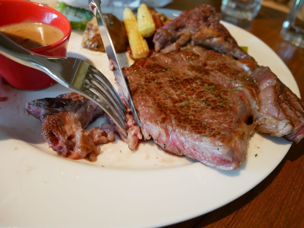 林老北一個人吃還喊吃不完,最後是跟朋友一起分掉這塊頂級牛排