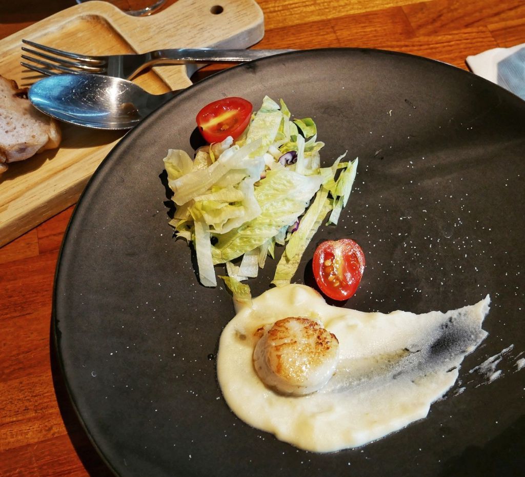 ▼ 前菜沙拉,竟然還有生食級干貝!!!!
