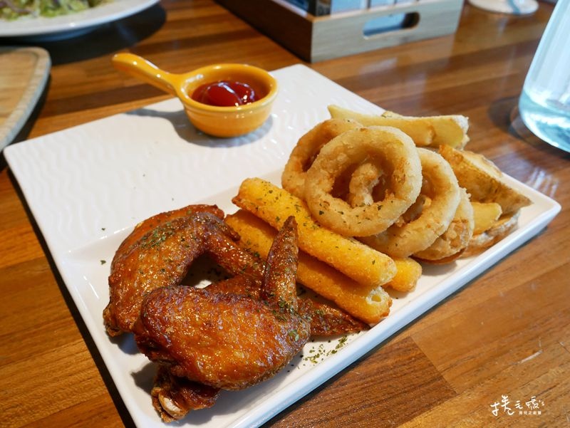 本來以為牛排分量不會太大,而且老公肉食主義會吃不下,所以有另外再加點一份炸物拼盤,沒想到前面牛排太大了,拼盤一上來光是看到已經飽到吃不下了阿~~~