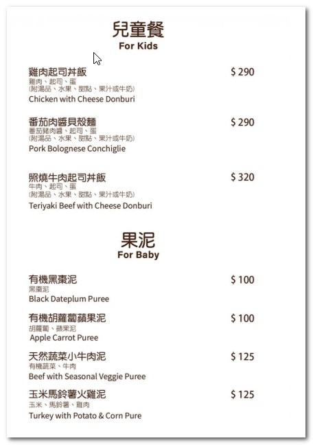 選擇親子餐廳捲毛最重視的第一是環境和設施,第二是餐點美味程度,(不好意思我金牛座,吃對我來說太重要了)。有些親子餐廳可能環境設施很棒,但餐點普普通通;有些擇是餐點很棒,但設施和環境就普普,帶小孩用餐,肚子和小孩都很重要,我真的不想委屈任何一個阿!所以最重要第一件事情我一定是先!看!菜!單!